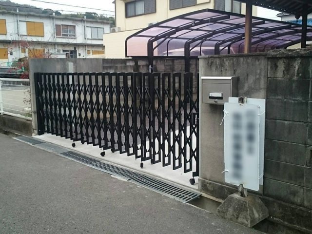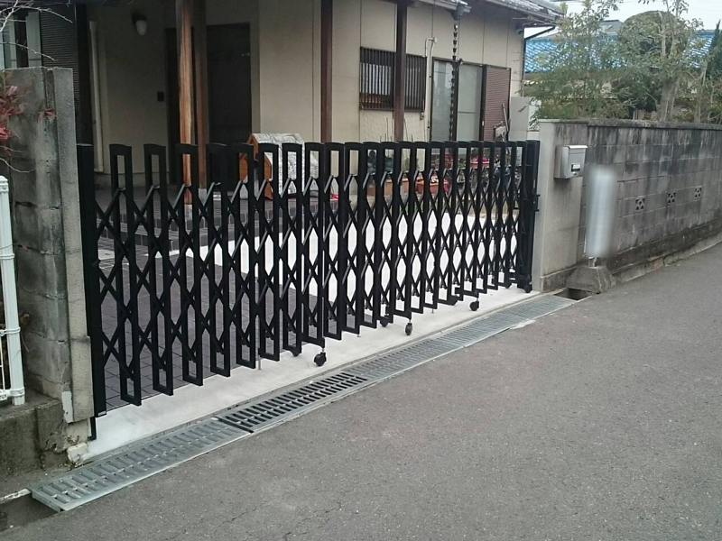 修繕工事で車庫の増設工事、及び、門扉からカーテンゲートに変更